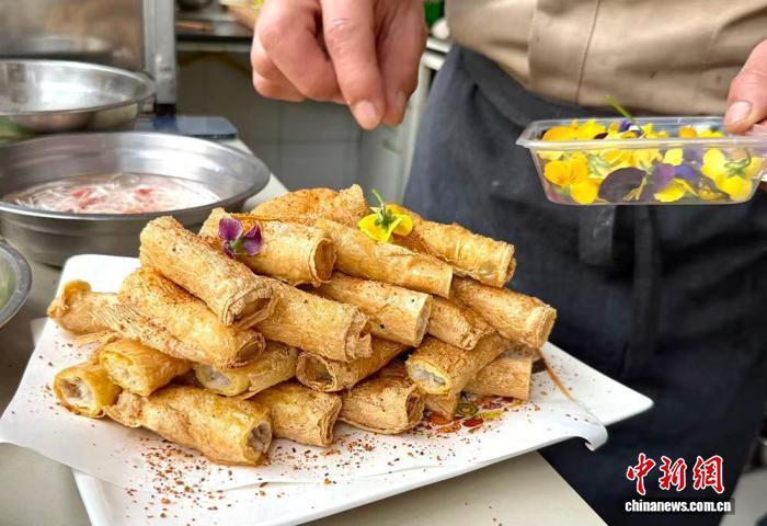 图为私厨在为黄鱼春卷装盘。王娇妮 摄
